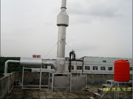 對發(fā)電機、鍋爐、熔爐、壓鑄等排出的尾氣黑煙,按目前的常規(guī)做法是采用旋流板水洗噴淋法,采用旋流板式噴淋塔,氣體在塔內(nèi)由下向上高速運動,與自上向下噴出的洗滌液相接觸,由于塔內(nèi)設(shè)置了多層旋流板,被水充分吸附,得以凈化;尾氣中NOX、SO2等氣態(tài)污物通過在噴淋水中加入一定比例的NAOH使噴淋水呈堿性,在噴淋過程中,水與尾氣接觸時,發(fā)生化學(xué)反應(yīng),使NOX、SO2等氣態(tài)污物得到中和達到良好的處理效果。